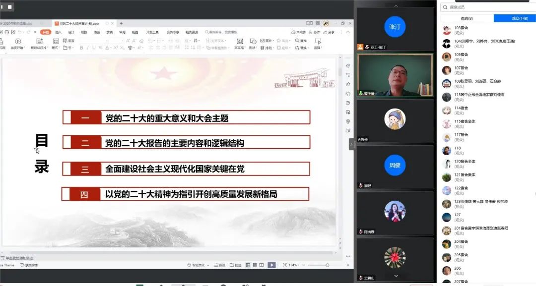 为深入学习宣传贯彻落实党的二十大精神,根据《关于开展党的二十大精神宣讲工作的通知》相关要求,11月18日,国际教育机构党委邀请学校专家宣讲团、马克思主义好色tv 党委副书记、副院长姜汪维老师为国际教育好色tv 和好色tv 全体师生作《以中国式现代化全面推进中华民族伟大复兴的宏伟蓝图》为题的学习党的二十大精神专题报告。报告会以线上会议的形式进行,国际教育机构党委全体教职工和500余名学生以宿舍为单位学习、收看了本次报告。