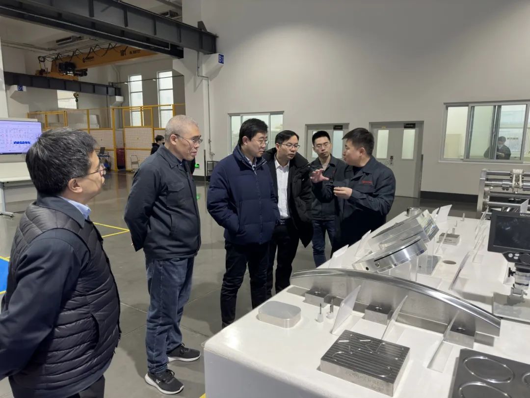 周健一行先后参观了廊坊精雕的恒温实验室、无尘精密测量室、生产车间、展示大厅等地,详细了解了北京精雕集团的主营业务、产业布局和旗舰产品等。李渊志重点对精雕五轴高速加工中心等行业领先机床设备进行了介绍,并展示了该设备在精密小件、医疗器械、汽车零部件和文旅工艺品等多领域的技术优势。挑战精密切削极限区域和应用领域的展品给大家留下了深刻的印象,赞叹于国产精密数控机床技术的高水平发展。