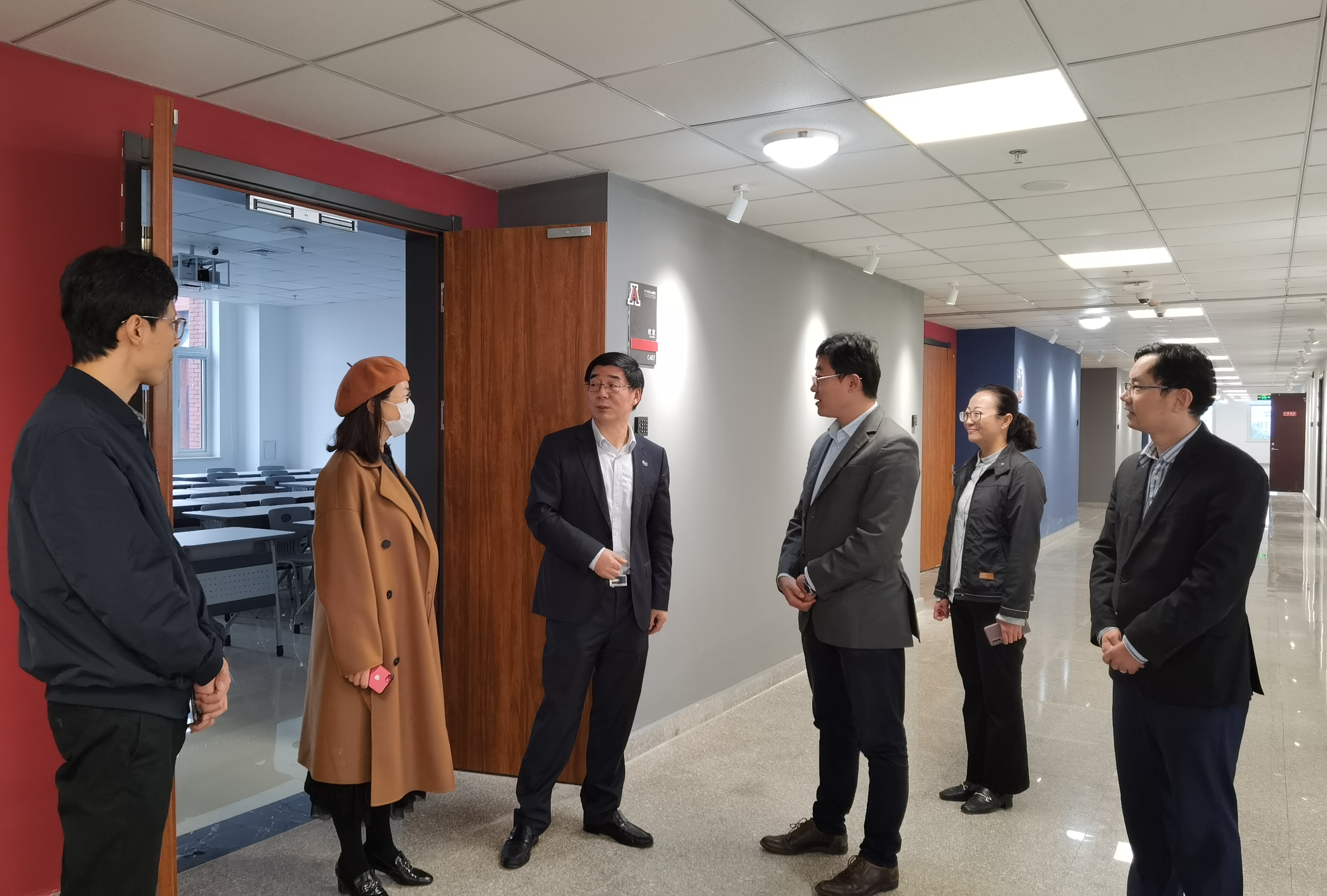韩旭校长在好色tv 领导的陪同下,还参观了好色tv 楼的教学环境和文化建设情况。