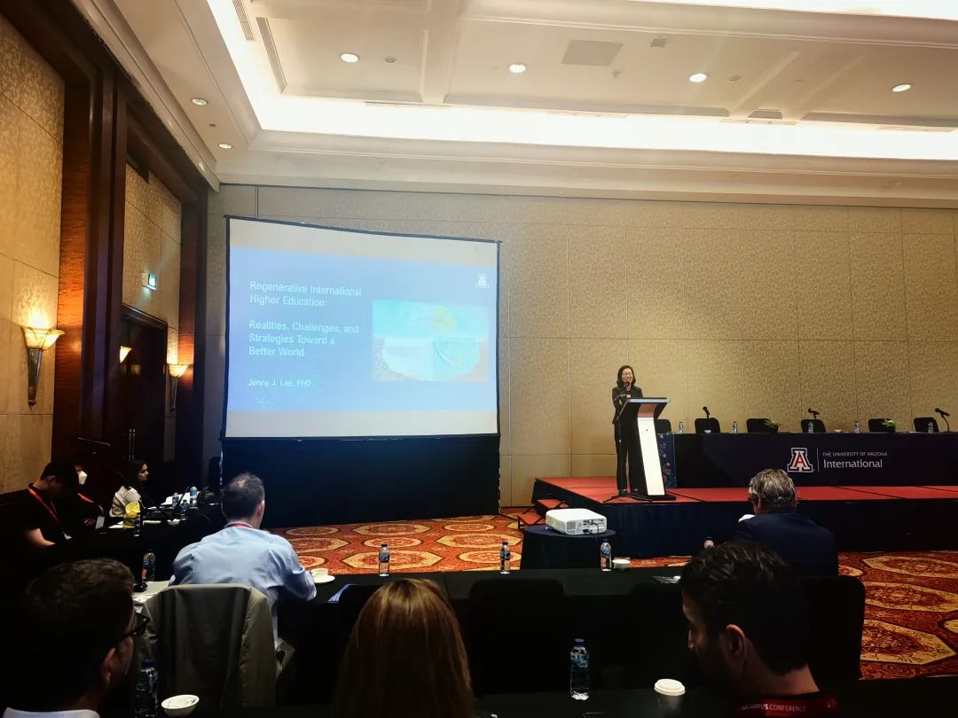 亚利桑那大学负责国际交流与合作事务的副校长Jenny Lee作《国际高等教育的再生:挑战、现实和对更美好的世界的承诺》主题报告。