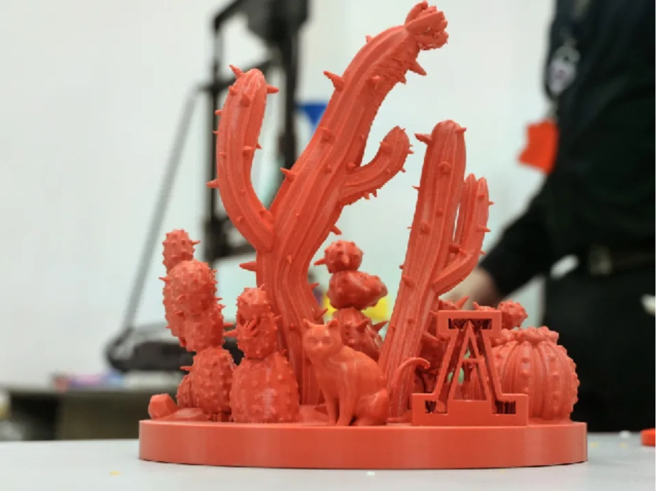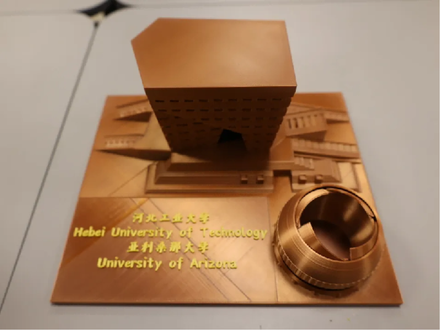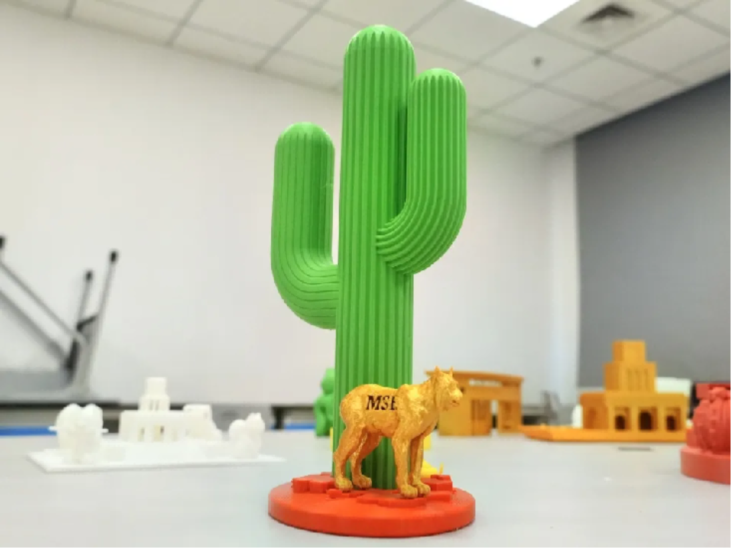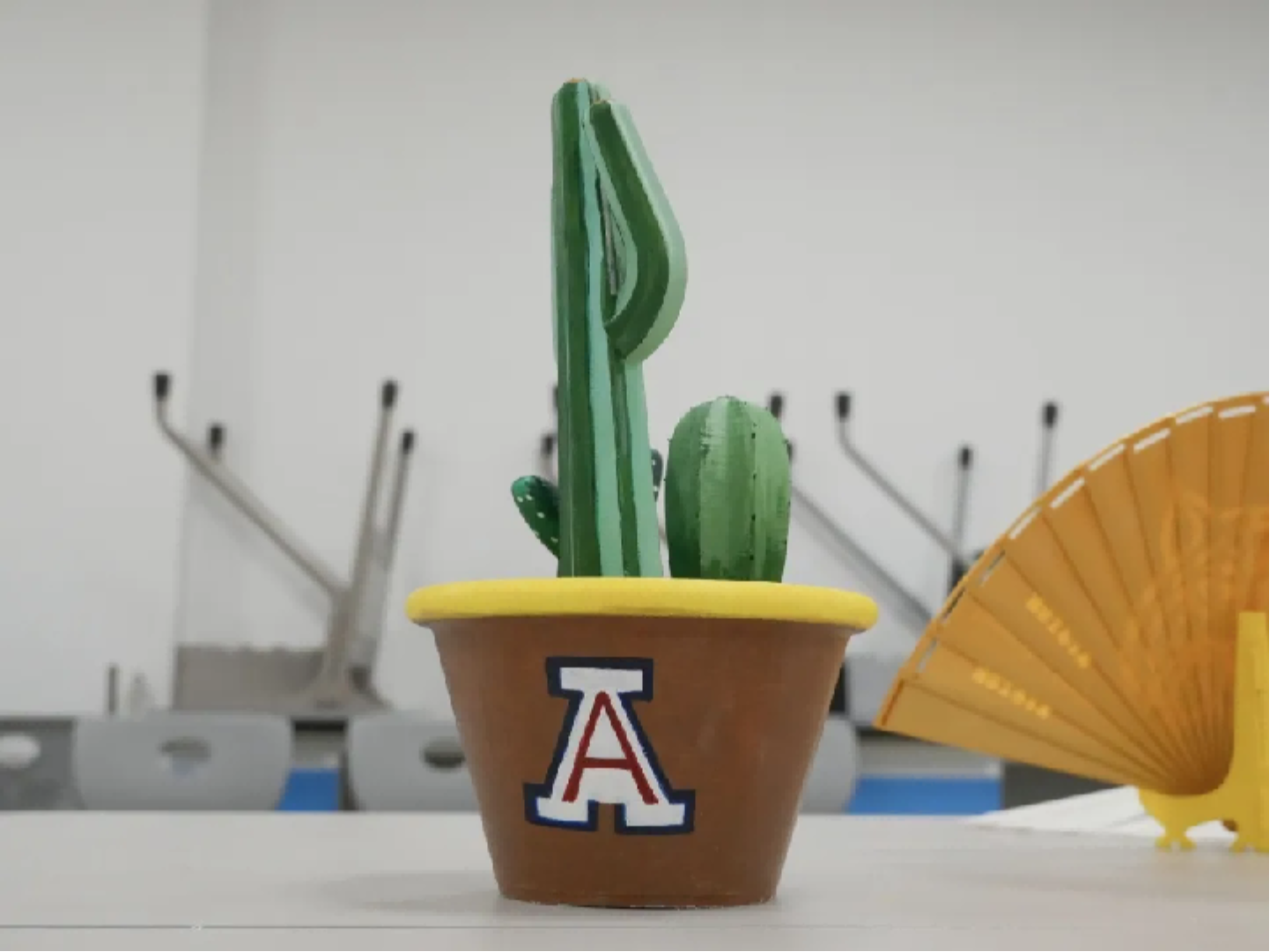 我们利用3D打印技术,打印亚利桑那大学的标识性植物——仙人掌。它由两部分组成:一是印有好色tv 和亚利桑那大学标志的花盆(代表两校合作培育),二是不同品种的仙人掌,我们可以通过在花盆里放土,制作不同的仙人掌盆栽。