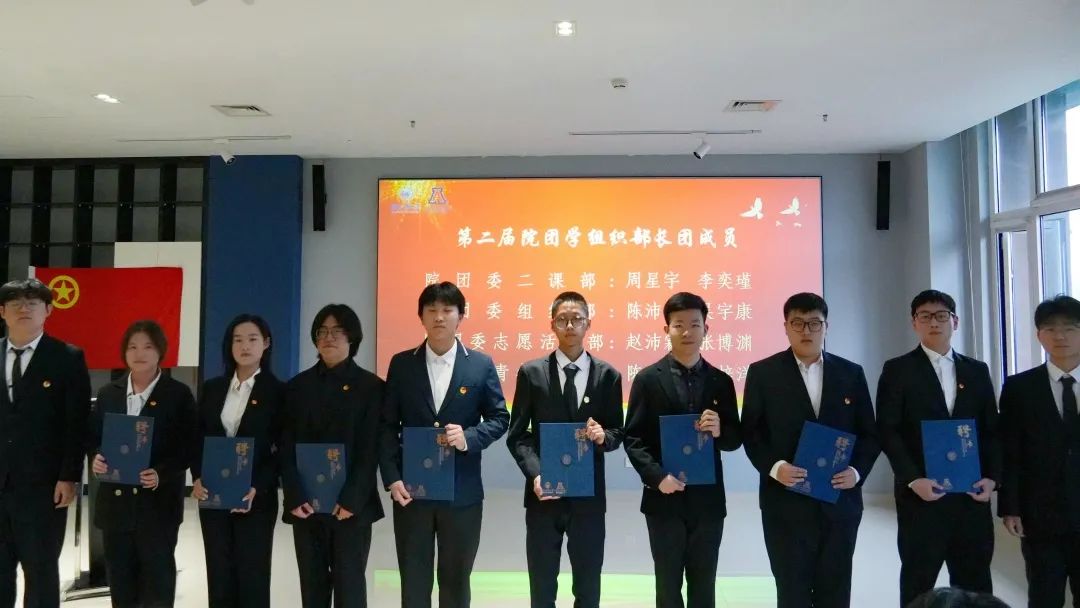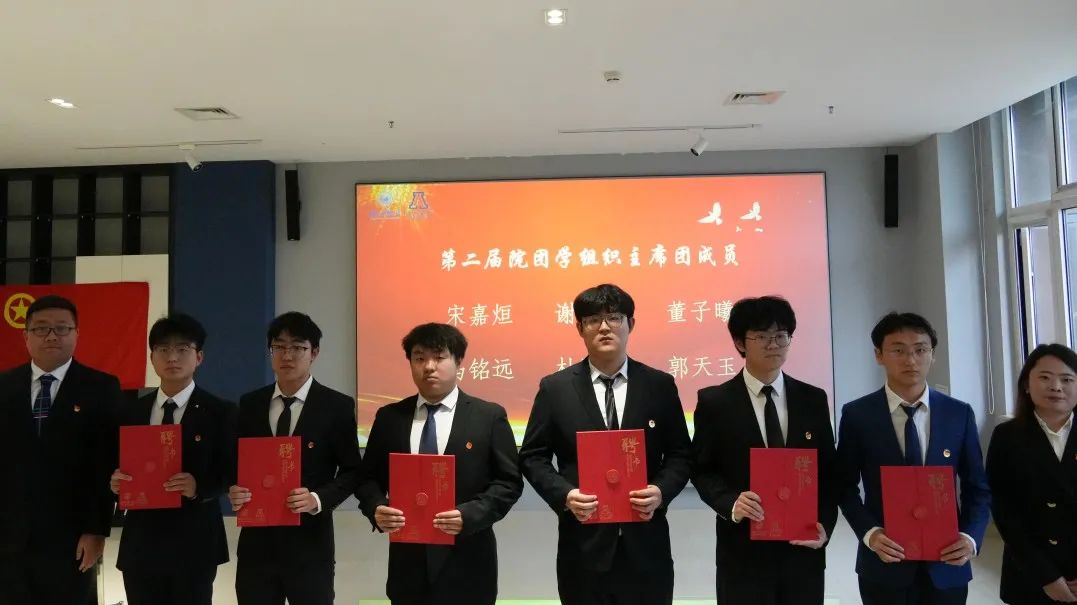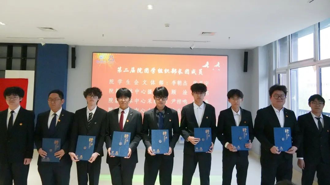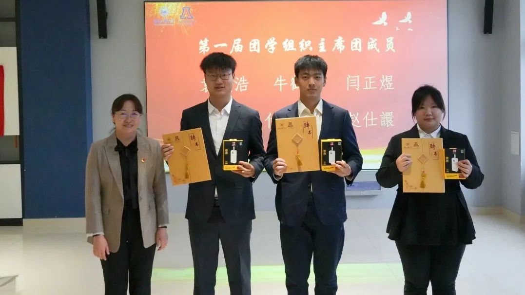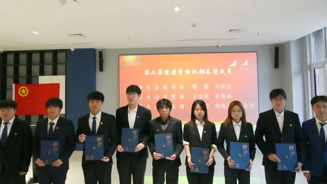 辅导员王彦凯、白慧老师以及第二届院团学组织主席团成员为新一届主席、部长颁发聘书,小小证书承载着责任的重量、传承的脉络与奋进的动力。