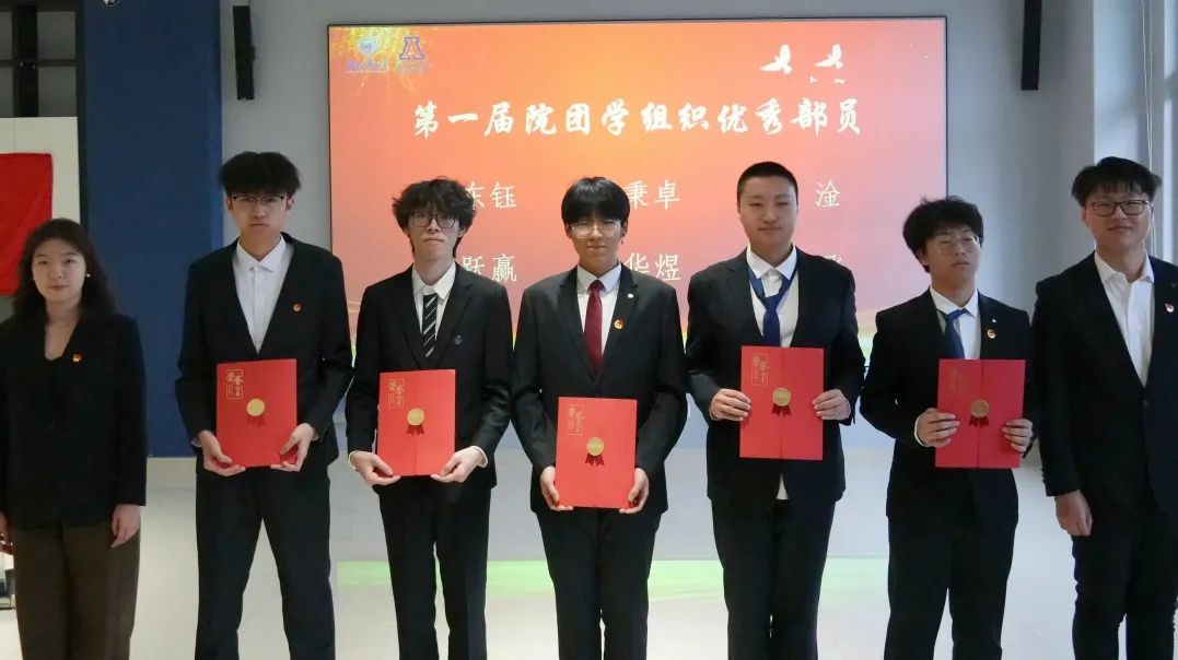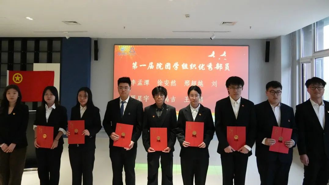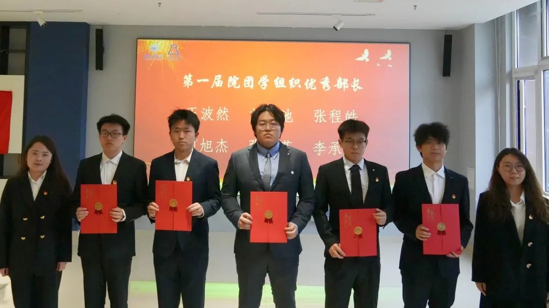 辅导员王彦凯宣读第一届团学组织优秀部长、优秀部员名单,指导老师李梦雪、白慧、刘宏吉、张佳琛为获奖成员颁奖,赞扬他们的责任与付出。